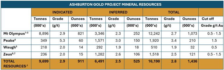Mineral Resource Estimate for the Ashburton Gold Project¹